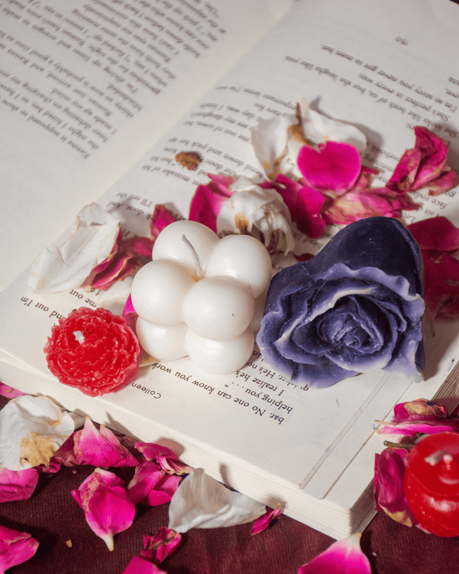 Elevate your décor with the bold and artistic charm of the AmberWick Candle. Hand-poured with care, this statement piece features a classic white wax base topped with a dramatic red wax drip and adorned with poker playing cards crafted in wax.